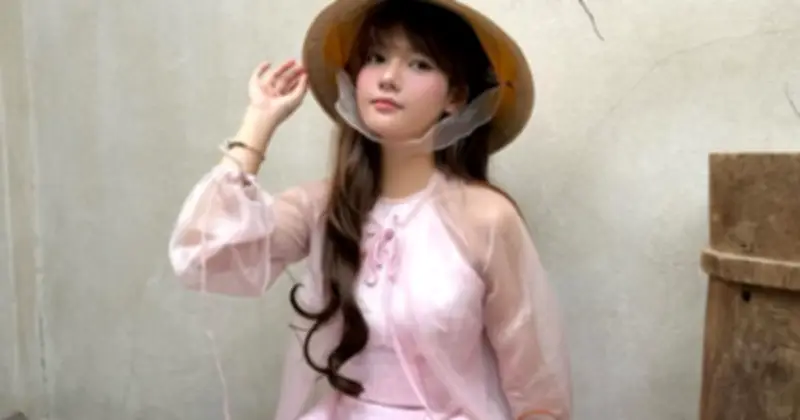 Áo yếm với thiết kế váy tầng màu hồng phấn, kết hợp chi tiết hoa đính nổi mang đậm tính nghệ thuật, là một ví dụ điển hình cho sự pha trộn giữa cổ điển và hiện đại. Không cần những bộ trang phục truyền thống phức tạp, việc dạo phố ngày đầu xuân với trang phục thoải mái như áo blouse trắng kết hợp quần ống suông đơn giản mang tinh thần tối giản đương đại. Chiếc nón lá đội trên đầu giúp cân bằng nét hiện đại của trang phục, tạo nên sự giao thoa thú vị giữa truyền thống và xu hướng thời trang mới.