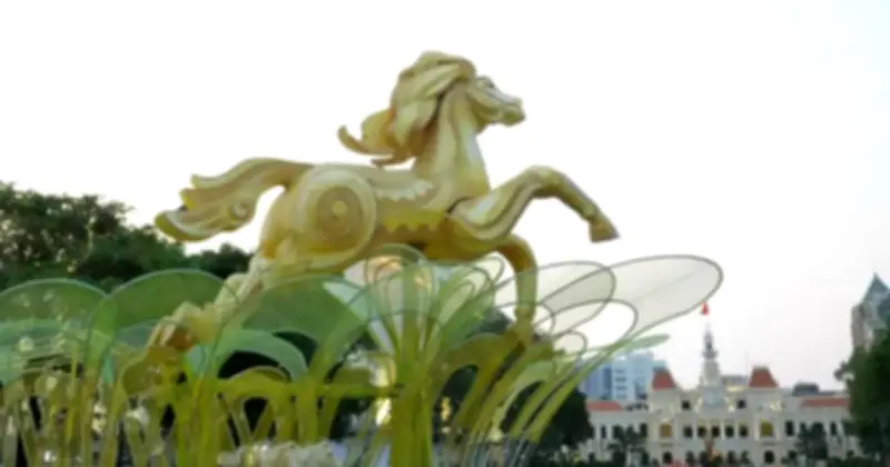 Các hạng mục quy mô lớn của Đường hoa Tết Bính Ngọ 2026 đã dần lộ diện, trong đó nổi bật nhất là hệ thống linh vật ngựa - biểu tượng trung tâm của sự kiện. Linh vật ngựa vàng khổng lồ không chỉ là một tác phẩm nghệ thuật đồ sộ mà còn thể hiện khát vọng về một siêu đô thị công nghệ cao.