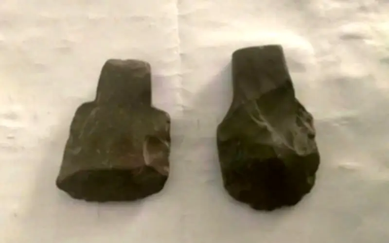Các lưỡi rìu được xác định chế tác từ đá silic, gồm hai loại chính là rìu vai xuôi và rìu vai ngang. Trên thân và phần lưỡi vẫn còn lưu lại dấu vết ghè đẽo và mài nhẵn – đặc trưng của kỹ thuật chế tác công cụ thời tiền sử. Đáng chú ý, nhiều hiện vật có dấu hiệu mài mòn, sứt khuyết ở phần lưỡi và chuôi. Điều này cho thấy chúng đã được sử dụng nhiều lần trong hoạt động sinh hoạt và sản xuất, như chặt cây, khai phá tự nhiên.