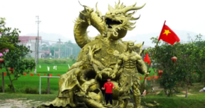 Tác giả của bức tượng là anh Bùi Văn Quân (34 tuổi). Anh cho biết tác phẩm được hoàn thiện đúng dịp Giỗ Tổ Hùng Vương. Với anh, đây không chỉ là một công trình điêu khắc, mà còn là cách kể lại truyền thuyết Con Rồng Cháu Tiên bằng hình ảnh gần gũi, sinh động hơn với người xem hôm nay.