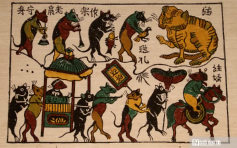 Đây là tác phẩm thể hiện trí tuệ dân gian bậc cao khi mượn loài vật để nói chuyện con người. Cảnh "Nghênh hôn" (đón dâu) thực chất là sự phê phán thói tham nhũng, hối lộ thời phong kiến. Muốn đón dâu thì họ nhà chuột phải mang chim, mang cá đến "tống lễ" (cống nạp) cho mèo được yên ổn tổ chức đám cưới, một hình ảnh châm biếm đầy hài hước nhưng cũng rất cay nghiệt về sự bất công trong xã hội phong kiến. Đặc biệt, chi tiết một con chuột không có đuôi chính là nét vẽ tài hoa của nghệ nhân xưa, ngụ ý con chuột sợ hãi đến mức "cụp đuôi" đi cống nạp, bởi "chắc gì lễ vật đã đổi được sự bình yên từ mèo".