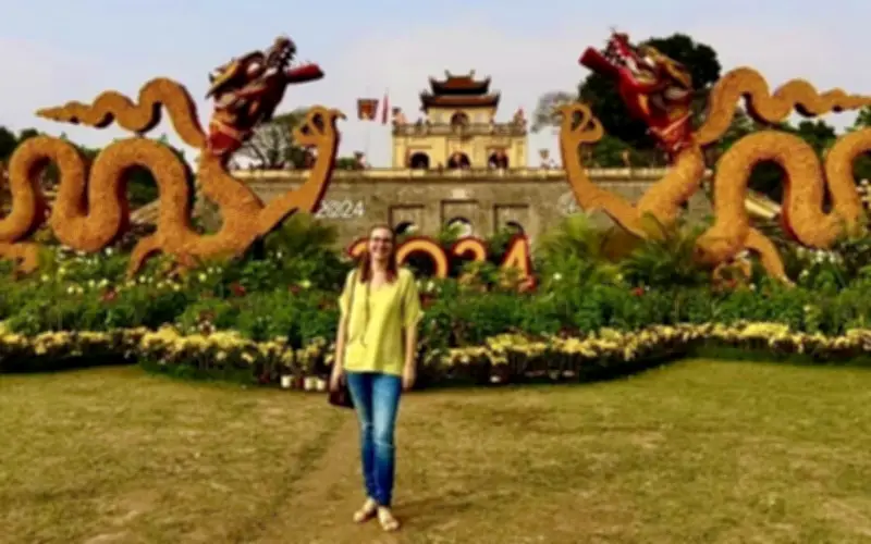 Sau hơn 5 năm sinh sống và làm việc tại Việt Nam, Carina van Weelden, một phụ nữ mang hai quốc tịch Đức và Hà Lan, đã coi Tết Nguyên đán là một trong những thời điểm yêu thích nhất trong năm của mình. Cô chia sẻ rằng đường phố, cửa hàng và nhà cửa được trang trí rực rỡ sắc màu, tạo nên không khí lễ hội đặc trưng, là thời điểm hoàn hảo để khám phá Hà Nội và các khu vực xung quanh bằng xe đạp, tận hưởng sự yên bình và sẵn sàng cho một khởi đầu mới.