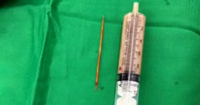Ban đầu, kết quả nội soi không phát hiện bất kỳ dấu hiệu bất thường nào. Tuy nhiên, sau khi tiến hành chụp CT và siêu âm chuyên sâu, các bác sĩ phát hiện một đoạn tăm tre đã xuyên từ tá tràng vào thận phải, gây nhiễm trùng nặng và hình thành ổ áp xe nguy hiểm. Dị vật này sau đó đã được lấy ra từ thận của bệnh nhân.