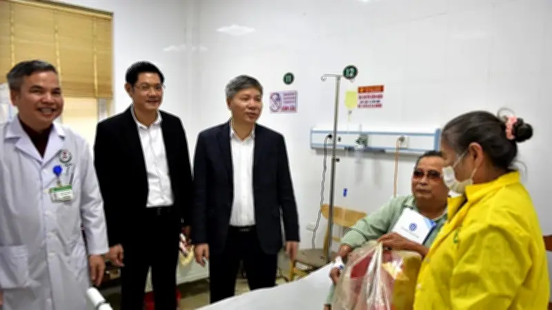 Tại các giường bệnh, Phó Giám đốc Nguyễn Đức Hòa và Giám đốc Nguyễn Ngọc Huyến đã ân cần thăm hỏi tình hình bệnh tật và gia cảnh của từng bệnh nhân. Hoạt động này nằm trong chương trình "Mang Tết ấm đến với bệnh nhân bảo hiểm y tế có hoàn cảnh khó khăn", một sự kiện thường niên của ngành bảo hiểm xã hội Việt Nam.