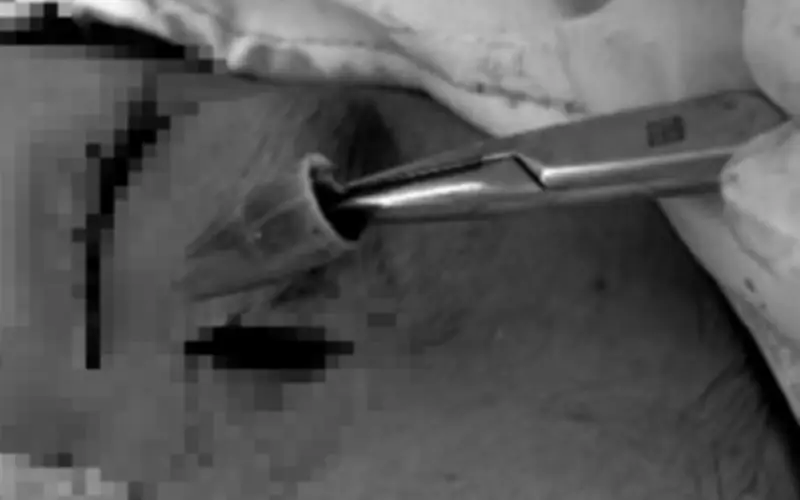 Mặc dù kết quả hình ảnh âm tính, các bác sĩ vẫn quyết định tiến hành phẫu thuật dựa trên bệnh sử quan trọng: lời kể về việc 'cây bút bị gãy' khi bị đâm. Đây được coi là bằng chứng vàng để định hướng chẩn đoán. Trong ca mổ, bác sĩ đã bóc tách theo đường vết thương cũ vào sâu trong hố mắt và lấy ra thành công một đầu bút bi nhựa màu xanh, kích thước 8x20mm. Sau đó, ổ áp xe được làm sạch, bơm rửa bằng dung dịch sát khuẩn, đặt dẫn lưu và khâu đóng vết thương.