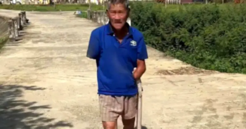 Trước đó, cùng ngày 15 tháng 3, trên các nền tảng mạng xã hội lan truyền nhanh chóng một đoạn clip ghi lại cảnh tượng đáng kinh ngạc. Trong clip, một người đàn ông lớn tuổi, bị cụt hai tay, đang kẹp theo một con rắn dài khi đi trên đường, thu hút sự chú ý của nhiều người.
