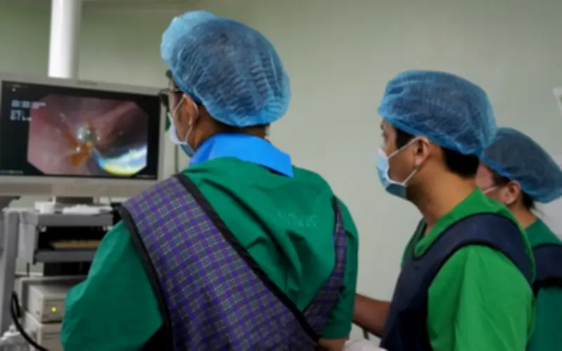 Sau khi hội chẩn đa chuyên khoa, ê kíp can thiệp quyết định thực hiện kỹ thuật ERCP (nội soi mật tụy ngược dòng) để khảo sát và lấy dị vật. Dị vật này được xác định là một mảnh xương cá, nghi ngờ đã xuyên qua đường mật, gây gián đoạn dòng chảy của mật và dẫn đến viêm đường mật, đau bụng kéo dài.