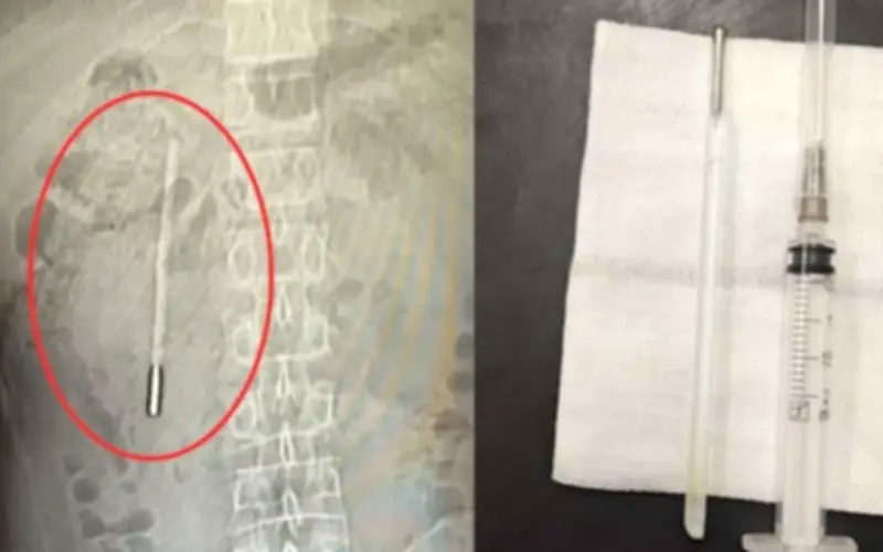 Chiếc nhiệt kế đã tồn tại trong cơ thể bệnh nhân suốt 20 năm, với đầu nhiệt kế gần chạm vào thành ruột, tiềm ẩn nguy cơ gây ra các biến chứng nghiêm trọng như thủng ruột và chảy máu ồ ạt. Điều này khiến tình trạng của ông Wang trở nên cực kỳ nguy hiểm nếu không được xử lý kịp thời.