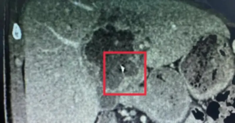 Một trường hợp y tế hy hữu vừa được ghi nhận tại tỉnh Vĩnh Long, khi bệnh nhân TT.L. (41 tuổi, xã Nhơn Phú) nhập viện trong tình trạng đau dữ dội vùng thượng vị kèm sốt cao. Sau khi tiến hành siêu âm và chụp CT-scan ổ bụng, các bác sĩ phát hiện một ổ áp xe gan với kích thước khoảng 5x6cm, bên trong có chứa dị vật kim loại dài gần 6cm.