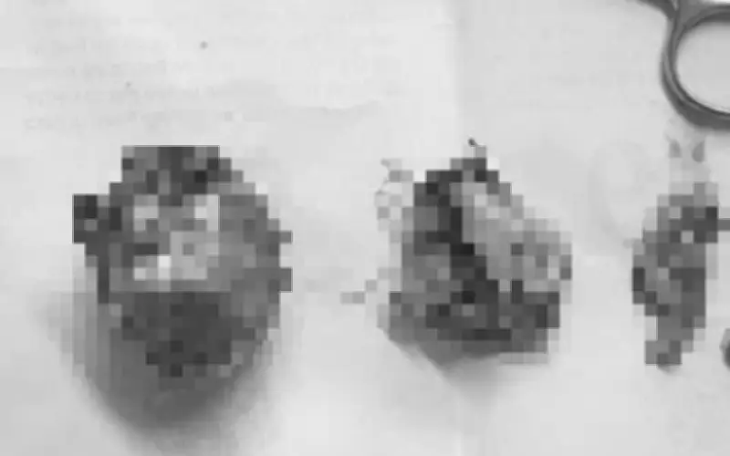 Nhận định đây là trường hợp hiếm gặp và đầy thách thức, các bác sĩ đã quyết định chỉ định phẫu thuật nội soi ít xâm lấn để loại bỏ các khối u. Sau ca phẫu thuật, khi tiến hành giải phẫu khối u, các bác sĩ bất ngờ phát hiện khối u vùng buồng trứng chứa một búi tóc, còn khối u vùng ổ bụng có dấu hiệu vôi hóa, cứng như xương.