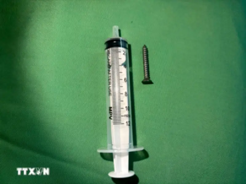 Để đảm bảo an toàn tối đa cho bé, ê-kíp phẫu thuật đã quyết định sử dụng phương pháp nội soi để gắp dị vật ra ngoài. Chiếc đinh vít có kích thước dài 2,5cm, đầu sắc nhọn, tiềm ẩn nhiều nguy cơ gây thủng dạ dày hoặc tổn thương đường tiêu hóa nếu không được xử lý nhanh chóng.