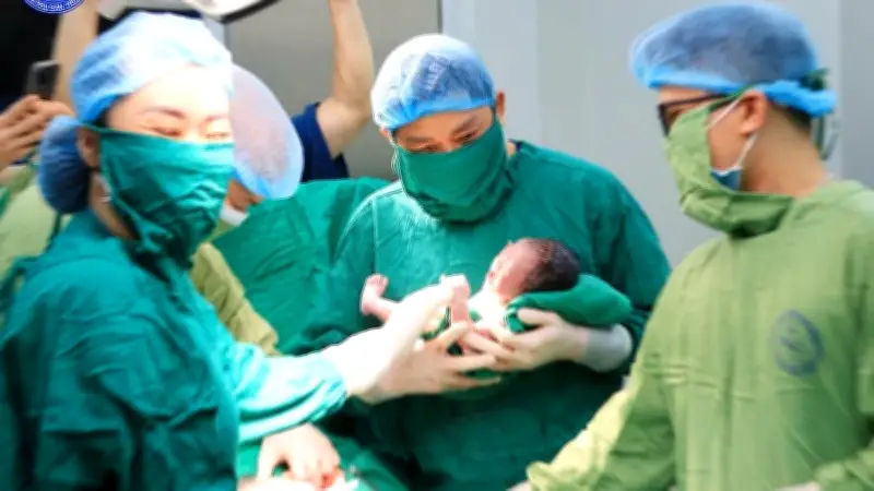 Khoảnh khắc được chờ đợi nhất đã đến khi em bé nặng 2,8kg cất tiếng khóc to, phản xạ tốt, khiến cả phòng mổ như chùng lại trong một nhịp thở nhẹ nhõm. Giáo sư đã thực hiện cắt dây rốn chậm cho em bé, một kỹ thuật hỗ trợ sức khỏe trẻ sơ sinh. Điều trùng hợp đầy ý nghĩa là em bé chào đời đúng vào ngày 20/3/2026, mang tên THIÊN LAM, đánh dấu một thành công y học đáng ghi nhận.