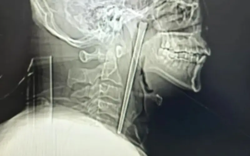 Một trường hợp y tế hy hữu vừa xảy ra tại Đại Liên, Trung Quốc, khi một người đàn ông 46 tuổi được đưa vào bệnh viện vì cơn đau họng dữ dội. Các bác sĩ đã vô cùng kinh ngạc khi phát hiện một chiếc đũa kim loại dài 12 cm bị mắc kẹt trong cổ họng của ông suốt 8 năm qua.