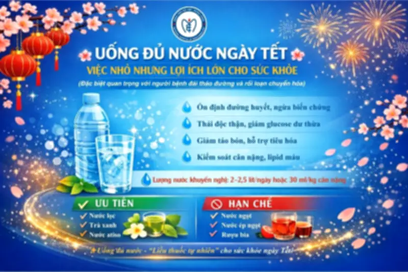 Uống đủ nước trong những ngày Tết tưởng là thói quen nhỏ, nhưng lại mang ý nghĩa quan trọng đối với sức khỏe, nhất là với người mắc đái tháo đường và các rối loạn chuyển hóa. Duy trì chế độ uống nước hợp lý, ăn uống lành mạnh và theo dõi sức khỏe thường xuyên sẽ giúp mỗi người tận hưởng một mùa Xuân an toàn, khỏe mạnh.