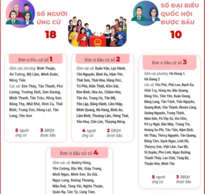 Tỉnh Tuyển Quang đã chính thức công bố kế hoạch tổ chức bầu cử đại biểu Hội đồng nhân dân (HĐND) tỉnh nhiệm kỳ 2026-2031. Theo đó, toàn tỉnh sẽ được chia thành 4 đơn vị bầu cử để bầu ra 50 đại biểu, đảm bảo tính đại diện và công bằng trong quá trình dân chủ.