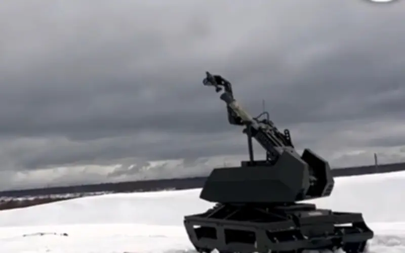 Cụm súng cối, có tên Bagulnik-82 (được đặt theo tên một loại cây trong tiếng Anh là trà Labrador), dường như tích hợp súng cối Podnos 82 mm 2B14 thời Liên Xô – nặng khoảng 42 kg và ban đầu được thiết kế cho các đơn vị lính dù và bộ binh hạng nhẹ. Trong clip, cánh tay robot mất khoảng năm giây để nạp mỗi viên đạn, dẫn đến tốc độ bắn chậm hơn so với kíp vận hành được đào tạo bài bản. Súng cối của robot bánh xích này có tầm bắn 4 km, nhưng đây có thể là một nhược điểm lớn trong điều kiện mà máy bay không người lái cảm tử FPV của đối phương luôn tiềm ẩn mối đe dọa.