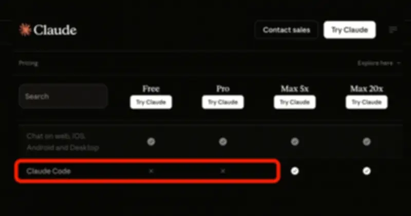 Trước đây, những vibecoder (lớp lập trình viên mới với kỹ năng lập trình theo cảm tính, sử dụng ngôn ngữ tự nhiên) sử dụng gói Claude Pro vẫn có thể truy cập vào tính năng Claude Code. Tuy nhiên, theo một bài đăng trên mạng xã hội, tính năng Claude Code đã không còn xuất hiện trong gói Pro, vốn là gói đăng ký cơ bản của Claude. Hình ảnh được chia sẻ cho thấy vibecoder sẽ phải đăng ký gói Max 5x (giá 100 USD, đắt gấp 5 lần gói Pro) hoặc gói Max 20x (giá 200 USD, đắt gấp 10 lần gói Pro) để tiếp tục sử dụng Claude Code.