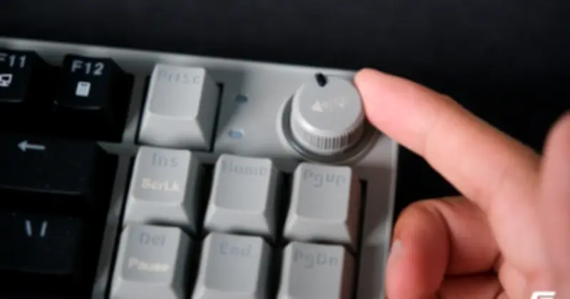 Ở mức giá dưới 600.000 đồng, knob xoay thường chỉ xuất hiện trên các mẫu đắt tiền hơn. Trên V501-87, núm xoay mặc định điều chỉnh âm lượng, nhưng có thể chuyển sang kiểm soát độ sáng đèn nền thông qua tổ hợp phím. Trải nghiệm thực tế cho thấy bước xoay rõ ràng, phản hồi chắc chắn, không bị lỏng lẻo như một số knob trên bàn phím tầm trung. Tính năng này mang lại sự tiện lợi rõ rệt: chỉnh âm lượng bằng tay nhanh hơn nhiều so với tổ hợp phím Fn.