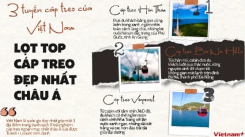 Danh sách top những tuyến cáp treo đẹp nhất châu Á đã công nhận ba đại diện xuất sắc của Việt Nam, bao gồm: