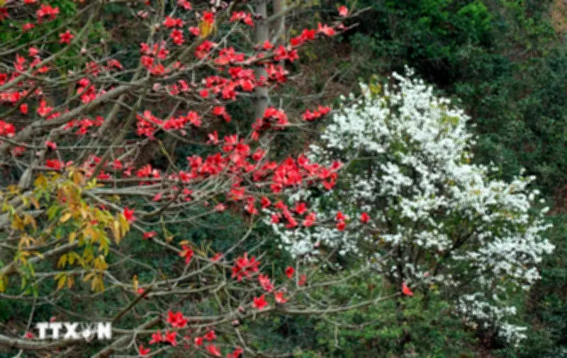Vào thời điểm này, hoa gạo với sắc đỏ rực rỡ và hoa ban với màu trắng tinh khôi cùng khoe sắc, tạo nên một bức tranh thiên nhiên sống động. Du khách và nhiếp ảnh gia đổ về đây để chiêm ngưỡng và ghi lại những khoảnh khắc đẹp. Sự kết hợp giữa hai loài hoa này không chỉ làm say lòng người mà còn góp phần tô điểm cho cảnh quan vùng cao.