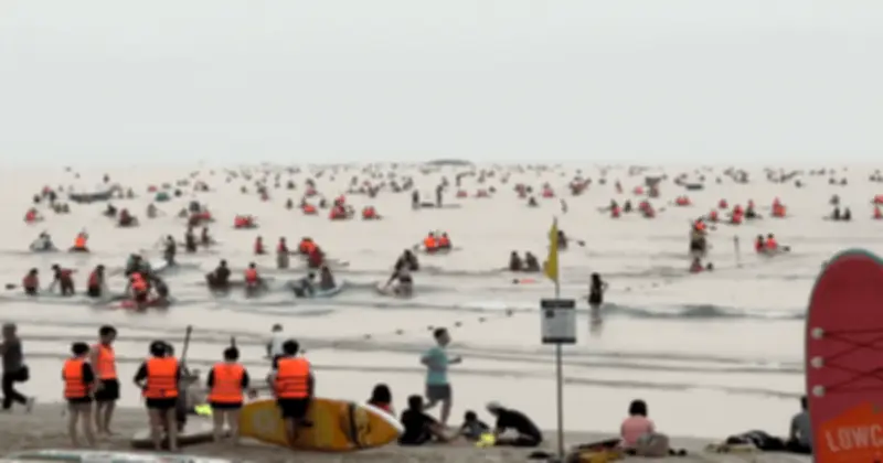 Mới đây, một đoạn video ngắn được tài khoản @do_gh05 đăng tải trên mạng xã hội Threads đã gây sốt, khiến cư dân mạng đứng hình mất vài giây. Hình ảnh ghi lại cho thấy hàng trăm chiếc ván SUP đủ màu sắc dập dềnh trên mặt biển, san sát nhau đến mức thi thoảng ván này lại va cộc vào ván kia, giữa tiếng cười nói rôm rả. Cảnh tượng này không chỉ minh chứng cho sức hút chưa bao giờ hạ nhiệt của Đà Nẵng, mà còn cho thấy hoạt động chèo SUP ngắm bình minh giờ đây đã biến thành một "hội thao" trên biển đầy ắp tiếng cười, thay vì trải nghiệm tĩnh lặng một mình một cõi như trước đây.