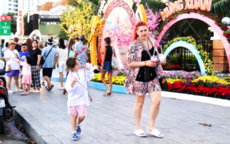 Tại Cảng hàng không quốc tế Cam Ranh, trong 6 ngày cao điểm từ 29 tháng Chạp đến mùng 5 Tết, đã có khoảng 774 lượt chuyến bay cất và hạ cánh. Trong đó, có 497 chuyến bay quốc tế và 277 chuyến nội địa, vận chuyển hơn 142.700 lượt hành khách. Bên cạnh đó, lượng khách đến bằng đường bộ, đặc biệt là khách tự lái xe từ các tỉnh Nam Trung Bộ và Tây Nguyên, cũng tăng đáng kể, góp phần vào sự nhộn nhịp chung.