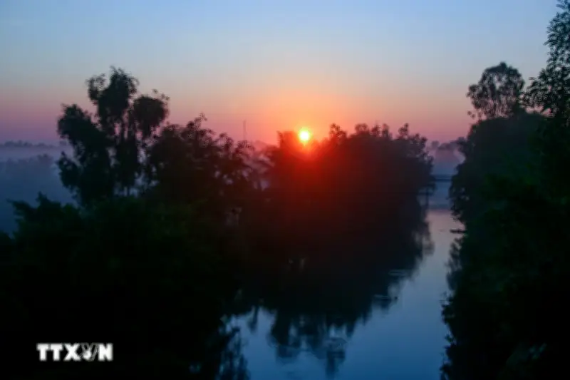 Khi ánh bình minh bắt đầu ló dạng, những tia nắng đầu tiên xuyên qua lớp sương dày, tạo nên hiệu ứng ánh sáng lung linh trên mặt nước và cánh đồng. Các con sông, kênh rạch chằng chịt của vùng đồng bằng sông Cửu Long trở nên huyền ảo hơn bao giờ hết, với hình ảnh những chiếc xuồng, ghe nhẹ nhàng trôi trong sương.