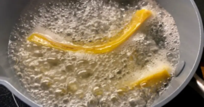 - Cho chuối vào khoảng 3 cốc nước đang sôi.