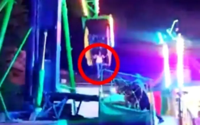 Cảnh tượng cô gái trẻ lơ lửng trên không trung trong tích tắc đã khiến nhiều người tham dự hội chợ vô cùng sợ hãi. May mắn thay, cô ấy đã được một người đàn ông đứng bên dưới nhanh chóng đỡ lấy và đưa ra khỏi khu vực nguy hiểm, trong khi trò chơi vẫn tiếp tục quay một cách hỗn loạn.