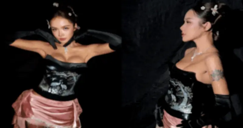 Trong lần xuất hiện này, Phương Ly lựa chọn outfit tông đen - hồng với thiết kế corset ôm sát, giúp vóc dáng được tôn trọn vẹn. Đặc biệt, vòng 1 nóng bỏng của cô khiến dân tình 'nghẹt thở'. Phần cúp ngực kết hợp cùng chất liệu thêu nổi vừa gợi cảm vừa giữ được độ sang trọng, không hề tạo cảm giác quá đà. Đi cùng đó là chân váy lụa ánh hồng và găng tay dài, khiến tổng thể trang phục vừa sang trọng vừa cuốn hút một cách tinh tế.