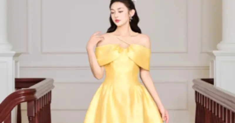 Vải gấm, với đặc tính dệt họa tiết chìm nổi, đứng phom chuẩn mực và bề mặt bóng sang trọng, đang được các nhà thiết kế tận dụng triệt để. Thay vì những màu sắc trầm truyền thống, gấm nay được nhuộm trong sắc xanh tươi mới, hồng phấn nhã nhặn hay vàng nồng nàn, giúp tôn da và mang lại thần thái rạng rỡ cho người mặc. Những khoảng hở nhẹ ở vai và cổ tạo điểm nhấn thanh tú, kín đáo mà vẫn đầy quyến rũ, trong khi chi tiết cổ chữ V, tay hến mềm mại và đường chiết eo cao khéo léo cộng hưởng để tôn vinh trọn vẹn những đường nét nữ tính.