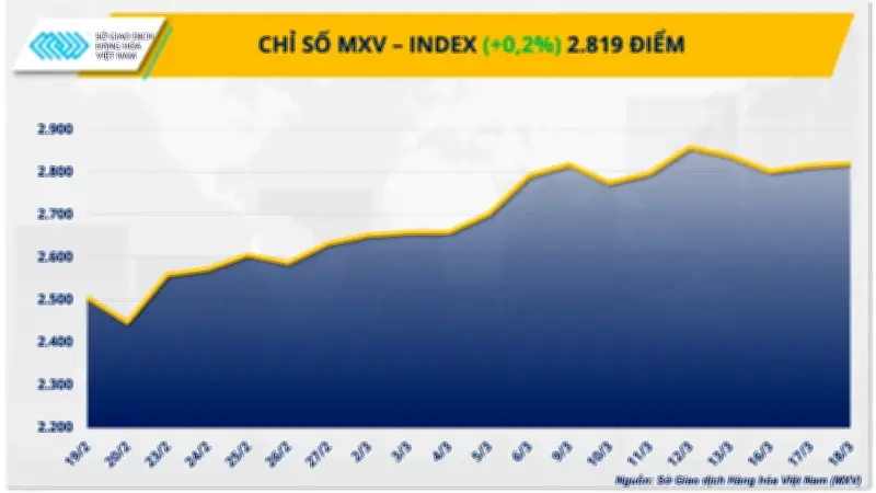 Thị trường hàng hóa toàn cầu đang chứng kiến sự phân hóa rõ rệt khi giá bạc tiếp tục chuỗi giảm xuống mức thấp nhất một tháng, trong khi dầu Brent tăng mạnh lên vùng cao nhất kể từ tháng 7/2022. Đóng cửa phiên giao dịch, chỉ số MXV-Index của Sở Giao dịch Hàng hóa Việt Nam tăng nhẹ 0,2% lên 2.819 điểm, nối dài chuỗi tăng sang phiên thứ ba liên tiếp.