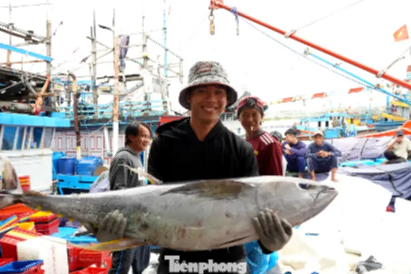 Hiện nay, giá cá ngừ đại dương đang dao động từ 100.000 đến 120.000 đồng mỗi kilogram, với trọng lượng trung bình mỗi con từ 20 đến 80kg. Trên bến cảng, từng con cá ngừ tươi rói được đưa lên khỏi khoang tàu một cách nhanh chóng. Các thương lái đứng chờ sẵn để phân loại, đóng thùng, và vận chuyển đi tiêu thụ hoặc phục vụ cho công đoạn chế biến xuất khẩu. Không khí mua bán diễn ra khẩn trương và sôi động, phản ánh sự bận rộn của mùa cá cuối năm.