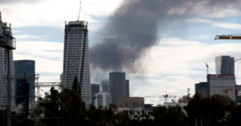 Khói bốc lên tại thành phố Tel Aviv, Israel sau các vụ phóng tên lửa đáp trả của Iran hướng tới lãnh thổ Israel, ngày 28 tháng 2. Ảnh: TTXVN
