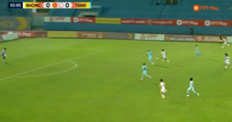 Phút 23, từ một pha phối hợp đẹp mắt bên cánh trái, tiền đạo của Becamex TP.HCM đã có pha dứt điểm tinh tế mở tỷ số 1-0 cho đội chủ nhà. Bàn thắng khiến khán giả trên sân vỡ òa trong niềm vui sướng.
