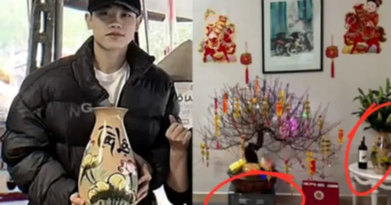 Trong loạt ảnh chia sẻ về cái Tết xa nhà, Đình Bắc vô tình trở thành tâm điểm bàn luận chỉ với một chi tiết nhỏ trong góc nhà. Giữa không gian Tết được trang trí gọn gàng, ấm cúng với hoa đào, câu đối đỏ và các vật dụng truyền thống, điều đặc biệt là chậu hoa đào lại được đặt ngay ngắn trên… một chiếc két sắt.