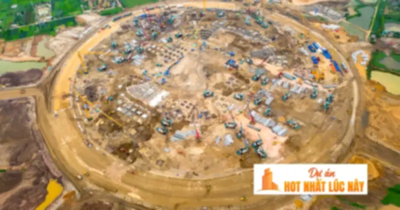 Chỉ sau vài tháng, khu đất từng là bãi trống đã biến thành một đại công trường nhộn nhịp với mật độ thi công dày đặc. Các hạng mục san lấp mặt bằng được triển khai đồng loạt, trong khi hệ thống đường công vụ, bãi tập kết vật liệu và khu vực thi công chính đã hình thành rõ nét, cho thấy quy mô và nhịp độ thần tốc của dự án.