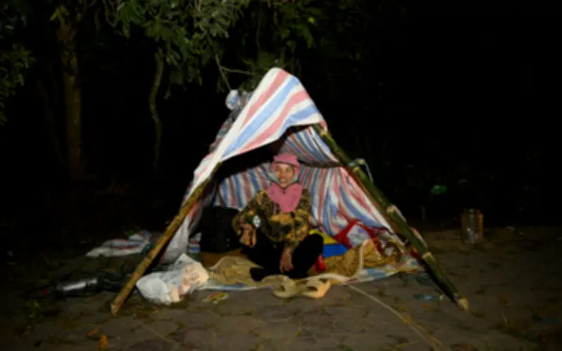 Họ dựng lán và kê giường gấp đơn sơ để nghỉ ngơi. Độ tuổi của tiểu thương rất đa dạng, từ những thanh niên trẻ trung năng động đến những người trung niên giàu kinh nghiệm, tất cả cùng chung một mục tiêu: kiếm thêm thu nhập cho gia đình dịp Tết.