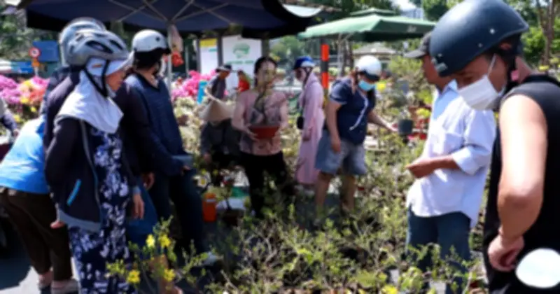 Bên cạnh mai, các gian hàng hoa kiểng nhỏ cũng thu hút đông đảo khách hàng. Tại sạp của anh Thành Được, 17 tuổi, hoa từng có giá 20.000 đồng mỗi chậu nay được bán với mức 5 chậu chỉ 40.000 đồng, tạo nên một không gian rực rỡ sắc màu phủ kín vỉa hè. Trời nắng gắt khiến các chủ vườn phải liên tục tưới nước để giữ cho hoa tươi tốt, nhưng điều này không ngăn cản họ nhiệt tình phục vụ khách.