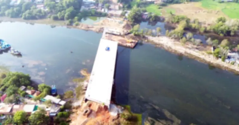 Do không thể tiếp cận từ hai đầu cầu, các nhà thầu buộc phải vận chuyển vật tư và thiết bị để thi công các mố cầu từ giữa sông. Cách làm này đã gây ra những trở ngại lớn về tổ chức thi công, vì không có đường vào công trình, dẫn đến tiến độ bị ảnh hưởng nghiêm trọng. Hiện tại, dự án mới chỉ đạt khoảng 60% khối lượng, so với mục tiêu hoàn thành đầu năm 2025.