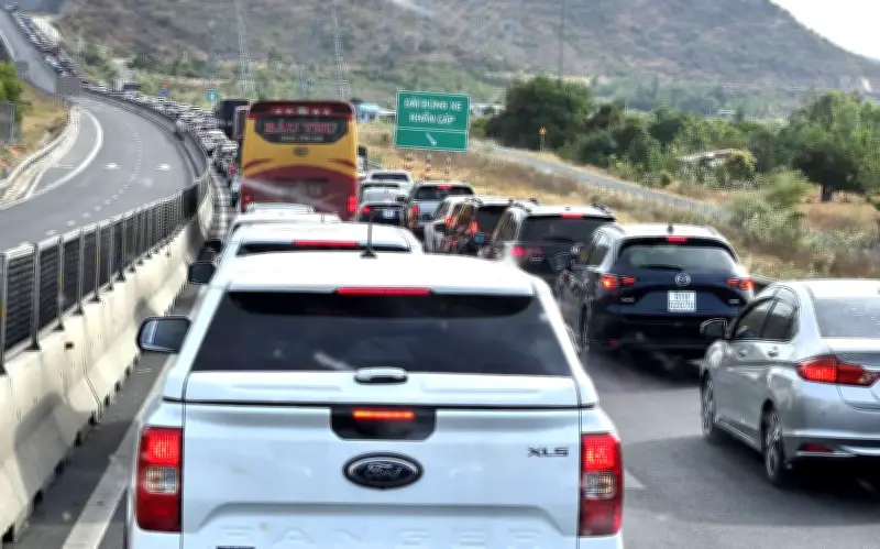 Trưa ngày 14-2, đại diện đơn vị quản lý vận hành cao tốc Cam Lâm - Vĩnh Hảo xác nhận với báo chí rằng lưu lượng xe cộ trên tuyến đường này đã tăng cao đột biến ngay từ sáng sớm. Đặc biệt, theo hướng di chuyển từ Nam ra Bắc, tình trạng ùn ứ nghiêm trọng đã xảy ra tại khu vực hầm Núi Vung, khiến giao thông qua đây rơi vào cảnh quá tải.