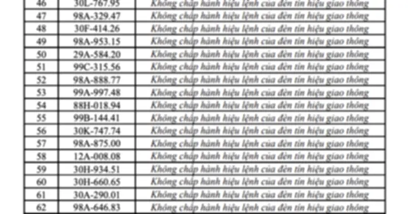 Đáng chú ý, không chỉ ô tô, xe mô tô cũng bị ghi nhận 22 trường hợp vượt đèn đỏ. Điều này phản ánh thực tế hệ thống camera giám sát hiện nay đã “phủ sóng” rộng, không bỏ sót hành vi vi phạm, bất kể loại phương tiện. Danh sách cụ thể đã được cơ quan chức năng công bố để người dân tra cứu và thực hiện nghĩa vụ nộp phạt đúng hạn.