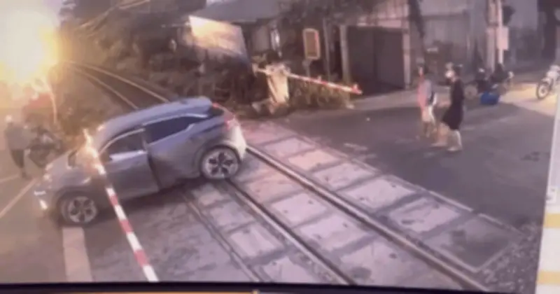Trong tình huống nguy cấp, tài xế đã xuống xe và cố gắng dùng tay nâng thanh chắn lên, nhưng nỗ lực không thành công. Ngay sau đó, tàu hỏa lao tới và tông trực diện vào phần đuôi của ô tô. Cú va chạm mạnh đã khiến chiếc xe bị văng xa vài mét và hư hỏng nghiêm trọng, với biến dạng rõ rệt. Rất may, tài xế đã kịp thời thoát ra ngoài trước khi tàu hỏa tiếp cận, nhờ vậy mà không xảy ra thiệt hại về tính mạng.
