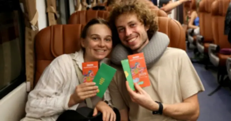 Trên chuyến tàu, nụ cười rạng rỡ của những người dân đang trên đường về đoàn tụ với gia đình hòa cùng niềm vui của du khách nước ngoài khi nhận được bao lì xì may mắn. Không khí Tết tràn ngập trong từng toa tàu, biến hành trình này thành một trải nghiệm văn hóa đặc sắc.