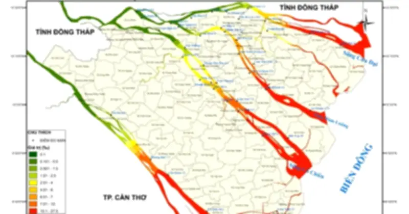 Với ranh mặn 4‰, khả năng xâm nhập sâu nhất được dự báo trên các sông như sau: sông Cửa Đại vào hơn 43km, sông Hàm Luông khoảng 56km, sông Cổ Chiên gần 55km, và sông Hậu hơn 57km. Đối với ranh mặn 1‰, mức độ xâm nhập còn nghiêm trọng hơn: