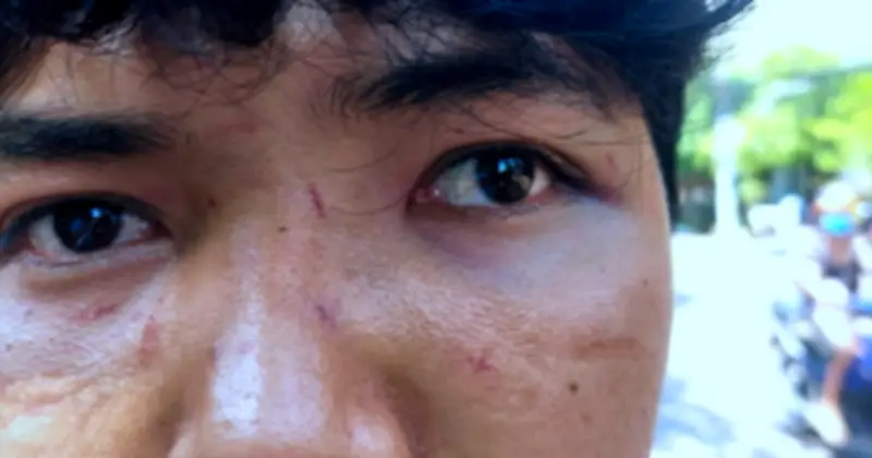 Trong khi đó, anh Trần Minh Luân sau khi bị hành hung vẫn còn nhiều vết thương rõ rệt trên cơ thể. Trên khuôn mặt anh xuất hiện nhiều vết trầy xước, mắt trái, môi trái và tai phải vẫn còn những vết bầm đen đáng lo ngại.