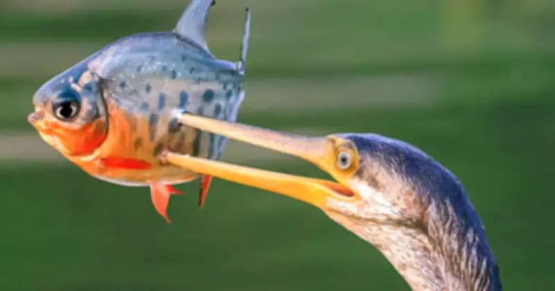 Khoảnh khắc chim cổ rắn mổ cá thu hút cộng đồng mạng