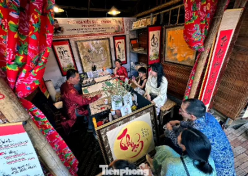 Điều thú vị là Hội chữ Xuân Bính Ngọ 2026 còn trở thành điểm hẹn văn hóa thu hút đông đảo du khách quốc tế. Hình ảnh những vị khách nước ngoài hào hứng xếp hàng, chăm chú dõi theo từng nét cọ của ông đồ đã trở thành nét thú vị đặc biệt của Hội. Với họ, đây là cơ hội quý giá để trải nghiệm nét văn hóa "tôn sư trọng đạo", trân trọng tri thức của người Việt, đồng thời ghi lại dấu ấn khó quên trong hành trình "xê dịch" ngang qua dải đất hình chữ S đúng dịp Tết Nguyên đán cổ truyền.