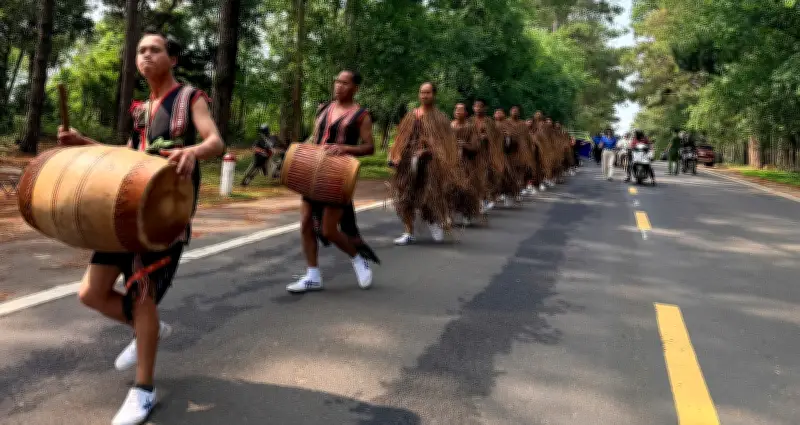 Hàng trăm nghệ nhân từ khắp các buôn làng Tây Nguyên đã hội tụ tại khu du lịch sinh thái Mang Đen (huyện Kon Plông, tỉnh Kon Tum) để tham gia lễ hội cồng chiêng mùa xoang, một sự kiện văn hóa đặc sắc diễn ra giữa khung cảnh rừng thông hùng vĩ.