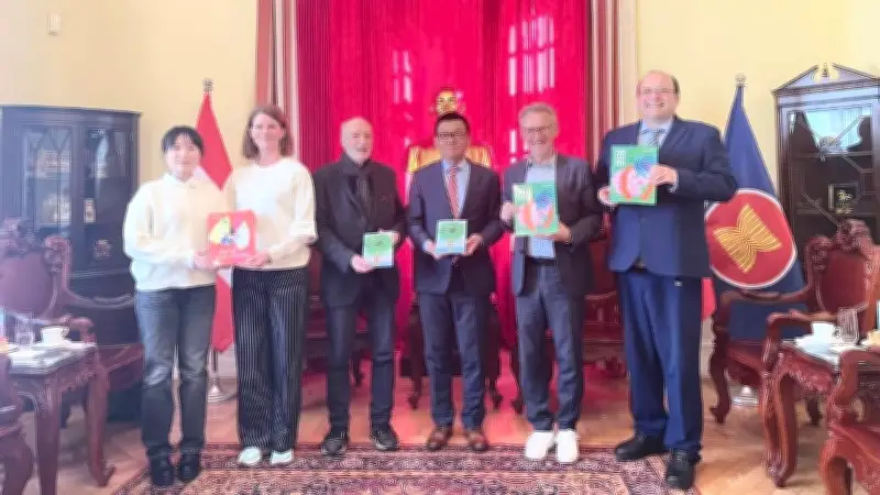 Buổi gặp có sự tham dự của đại diện Nhà xuất bản Jungbrunnenverlag và Hội Hữu nghị Việt Nam-Áo, phản ánh sự quan tâm chung trong việc thúc đẩy hợp tác văn hóa, xuất bản dịch thuật và giao lưu nhân dân giữa hai nước. Đây là cơ hội để các bên trao đổi ý tưởng và kế hoạch cụ thể nhằm tăng cường mối quan hệ song phương.